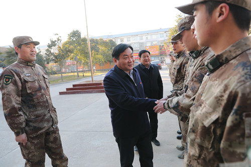 在縣武警中隊(duì),王國璽代表縣四個(gè)班子領(lǐng)導(dǎo)向武警戰(zhàn)士致以新春的問候和良好的祝愿,希望全體官兵繼續(xù)發(fā)揚(yáng)軍民團(tuán)結(jié)的優(yōu)良傳統(tǒng),扎實(shí)推進(jìn)部隊(duì)全面建設(shè),全力以赴做好維穩(wěn)工作,努力為太康經(jīng)濟(jì)社會(huì)發(fā)展保駕護(hù)航。