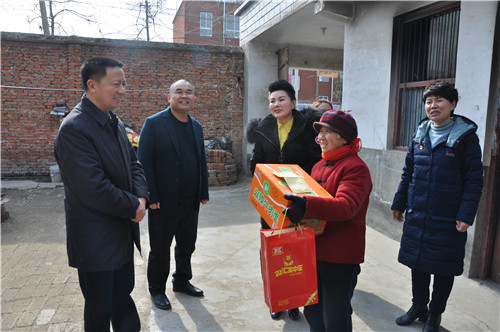 當(dāng)日上午,愛(ài)心企業(yè)商水建業(yè)為500個(gè)家庭送來(lái)了米面油等過(guò)年物質(zhì),河南省越調(diào)劇團(tuán)為農(nóng)民帶來(lái)精彩的戲曲演出,剛剛參加全省“紅色文藝輕騎兵”慰問(wèn)演出回到周口的申小梅女士為村民表演了群眾耳熟能詳?shù)摹妒战獋ァ愤x段。