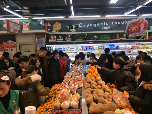 春節(jié)臨近,各大超市進(jìn)入購物高峰,置辦年貨的消費(fèi)者逐漸增多。為讓市民在春節(jié)期間吃上放心安全的食品,萬果園超市組織了上百人的采購團(tuán)隊(duì),分赴全國各地蔬菜水果主產(chǎn)區(qū)進(jìn)行貨源的尋找、品種的開發(fā)、基地的考察,蔬菜已確定與山東、云南、福建、湖北、四川、海南6省20多個(gè)基地進(jìn)行合作;水果已確定與山東、新疆、四川、廣西、湖北、安徽,泰國、越南“六省(區(qū))兩國”的30多個(gè)基地進(jìn)行合作;生鮮肉蛋與國內(nèi)各大生產(chǎn)廠家,如雙匯、雨潤、眾品、正大、柳江等廠商聯(lián)合,減少流通環(huán)節(jié),降低流通成本,保證周口市民在春節(jié)期間的生活需求。河南萬果園實(shí)業(yè)集團(tuán)有限公司生鮮采購總監(jiān)趙中華介紹,為滿足市民的購物需求,自1月28日(臘月二十三)開始,萬果園市區(qū)及縣城門店將延長閉店時(shí)間,2月4日至6日(除夕至正月初二)放假,2月7日(正月初三)正常營業(yè)。