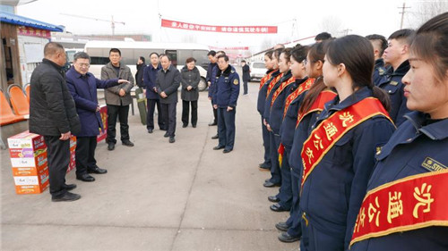 在縣公交公司,皇甫立新首先向全體干部職工致以節(jié)日的問候,對他們一年來為全縣人民安全順利出行做出的貢獻表示感謝。在認真聽取有關負責人關于節(jié)日期間增開班車和車次的匯報后,皇甫立新說,公交車作為公共交通運輸體系中的重要組成部分,不僅在完善城市交通運輸格局、方便市民出行方面發(fā)揮著重要作用,同時也是城市形象的象征。希望堅守崗位的公交職工要繼續(xù)提供優(yōu)質服務,文明安全駕駛,為居民在春節(jié)期間走親訪友和安全出行提供方便、搞好服務,展示出沈丘公交公司員工的良好素質和良好形象。并叮囑公交公司負責人要合理安排好職工的工作和生活,為廣大一線工作人員安心工作提供堅實的后勤保障,讓他們更加舒心愉快地服務廣大群眾。