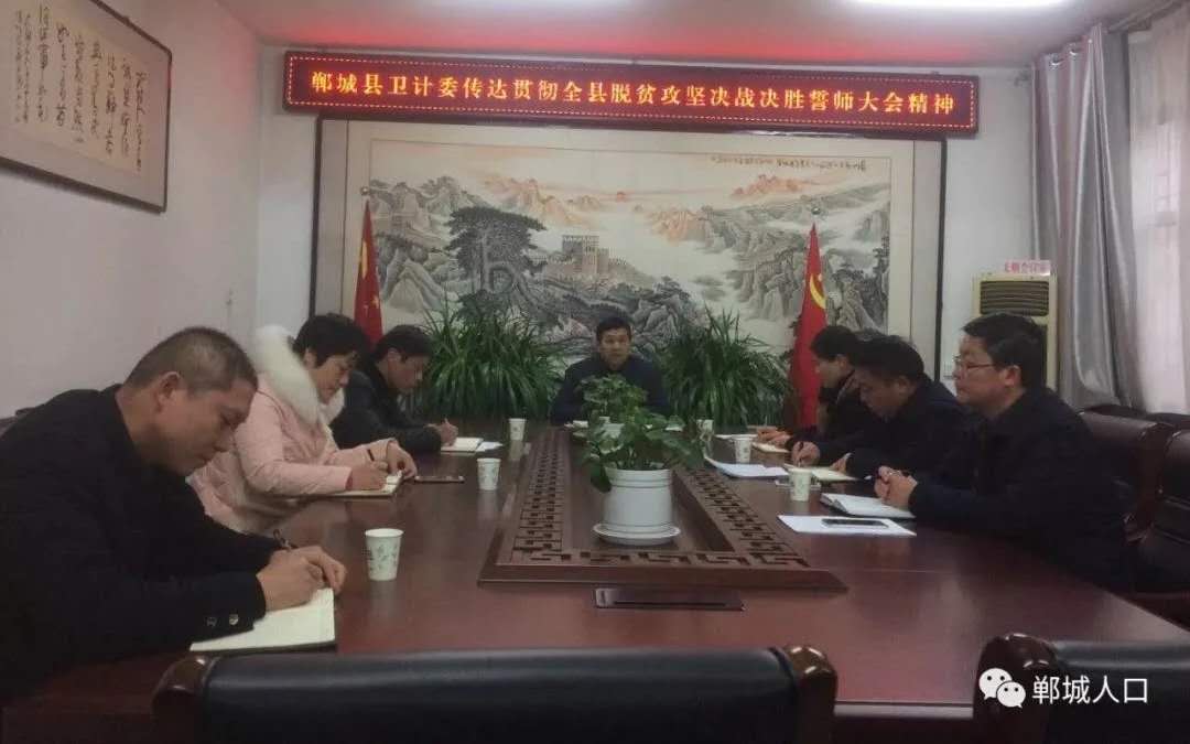 2月13日,鄲城縣脫貧摘帽決戰(zhàn)決勝誓師大會在縣人民會堂隆重召開。下午,縣衛(wèi)計委及時組織召開了委全體班子成員工作會,會議認(rèn)真?zhèn)鬟_(dá)學(xué)習(xí)了全縣脫貧摘帽決戰(zhàn)決勝誓師大會精神,重點學(xué)習(xí)了縣委書記羅文閣、縣長李全林等領(lǐng)導(dǎo)在大會上的重要講話精神,同時對全縣衛(wèi)生計生系統(tǒng)2019年脫貧攻堅重點工作任務(wù)作了統(tǒng)一安排部署。