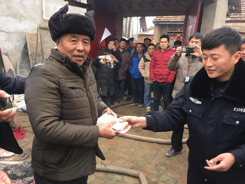 2月17日下午3時許,鄲城縣南豐鎮(zhèn)徐寨行政村徐大莊一村民使用地鍋后忘記滅火發(fā)生火災,鄲城縣公安局一村一警張振偉冒險進入火中,幫助轉(zhuǎn)移出1萬元現(xiàn)金和重要證件。