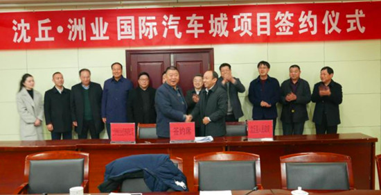 2月26日,沈丘洲業(yè)國際汽車城項(xiàng)目簽約儀式在錦華大酒店舉行。沈丘縣委書記皇甫立新,縣長劉國慶,縣委常委、常務(wù)副縣長郝四春,副縣長呂孝坤,副處級(jí)干部張曉,上海洲業(yè)企業(yè)管理有限公司董事長李海波,總裁李榮輝等出席簽約儀式,縣直相關(guān)職能部門負(fù)責(zé)人參加了簽約儀式。