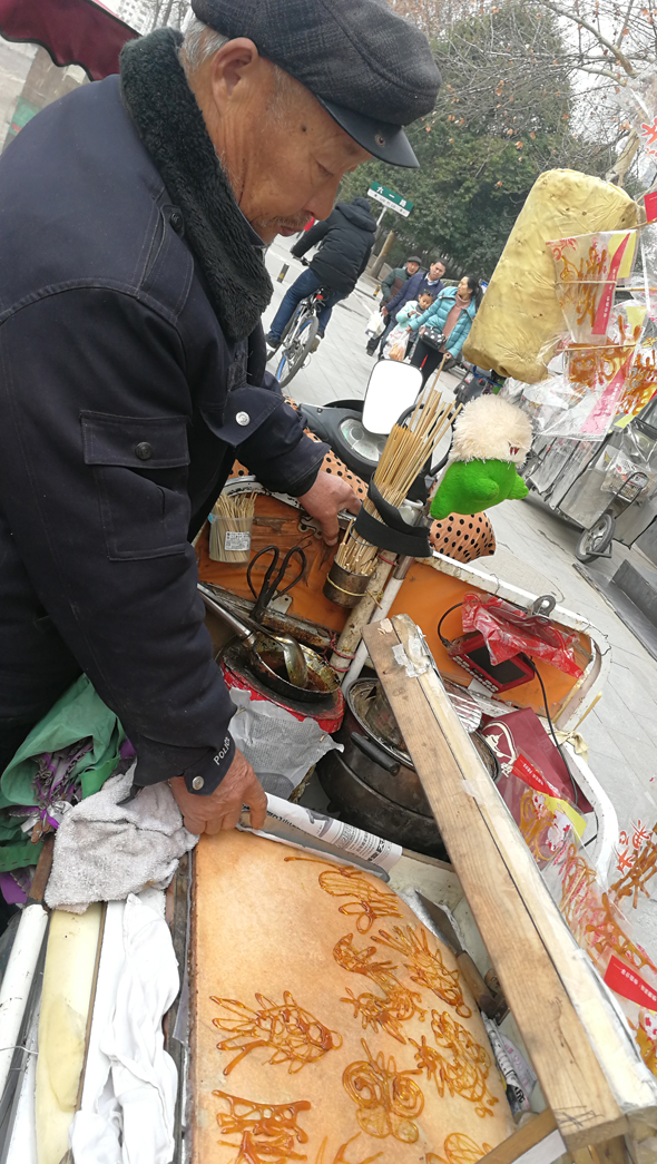 以糖稀為原料制作一幅糖畫,只需要1分多鐘。昨日,記者在中心城區(qū)七一路與六一路交叉口附近,目睹了閆先生制作糖畫的過程。閆先生以糖稀為原料制作的小動物惟妙惟肖,還有“?!薄皭邸钡茸?。閆先生告訴記者,他是周口本地人,制作糖畫已30多年。記者 關(guān)秋麗 攝