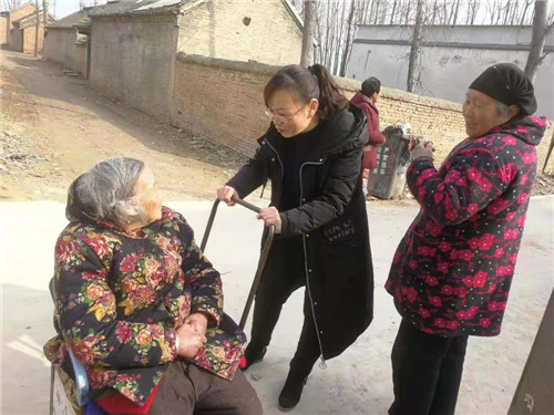 鏗鏘扶貧路,拳拳民生情。林娜加班加點(diǎn),扎實(shí)的作風(fēng)不僅有效推動(dòng)了幫扶工作的順利推進(jìn),而且也換來了當(dāng)?shù)卮迕竦摹包c(diǎn)贊”。為推進(jìn)老人戶合吃合住問題,林娜三番五次去做工作,段屯行政村于樓村86歲的老人王全英,年邁不能自理,遭兒子嫌棄,3個(gè)兒子都不愿贍養(yǎng)老人。一次,陰雨天,老人不慎跌倒,摔傷胳膊,兒女們都不管不顧,林娜在走訪的過程中了解情況后,立即幫老人買來膏藥貼上,同時(shí)開始做兒女的思想工作,“家有一老似有一寶,孝親愛老是中華民族的傳統(tǒng)美德”,經(jīng)過林娜再三做思想工作,三個(gè)兒子茅塞頓開,愿意贍養(yǎng)老人,最終老人在三個(gè)兒子家輪流吃住。在林娜及隊(duì)員的共同努力下,段屯行政村不僅老人戶全部合戶,而且在全村掀起了爭做賢孫孝媳的局面。一名老黨員袁士成,每次見了工作隊(duì)都豎起大拇指說:“兒女好,兒女好,兒女再好不如共產(chǎn)黨對俺好”。