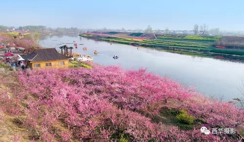 每年3月底至4月上旬,西華潁河兩岸萬畝桃花競相開放,樹下金燦燦的油菜花、綠油油的麥苗相映成趣,紅、黃、綠構(gòu)成了五彩繽紛的人間仙境,置身其中,花香沁人心脾,色彩絢麗奪目,景色美不勝收,恍如身處陶淵明筆下的“世外桃源”。