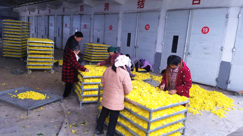 “我們提供優(yōu)質(zhì)種苗給種植戶,并且提供免費(fèi)的技術(shù)指導(dǎo)以及技術(shù)培訓(xùn),群眾在種植金絲皇菊的過程中遇見問題都可以隨時(shí)來咨詢;在金絲皇菊成熟后我們會(huì)對(duì)老百姓所種植的菊花進(jìn)行保底收購,保證種植戶的利潤不受影響?!睋?jù)了解,目前僅張辛行政村就有菊花種植合作社3個(gè),種植金絲皇菊、雪菊、貢菊等各類菊花近千畝,帶動(dòng)全村貧困人員由原來的303戶、998人下降至現(xiàn)在的7戶、18人,全村人靠種植菊花實(shí)現(xiàn)創(chuàng)收致富。