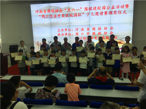 6月1日,省圍棋協(xié)會在周口經(jīng)濟(jì)開發(fā)區(qū)實驗學(xué)校舉行慶“六一”圍棋進(jìn)校園公益活動暨校園杯圍棋邀請賽。省圍棋協(xié)會副會長郭寶林、秘書長袁曦、副秘書長張新華,市工信委主任姚衛(wèi)田,周口圍棋協(xié)會有關(guān)領(lǐng)導(dǎo)參加。