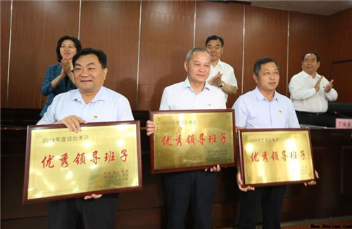 根據(jù)《黨政領(lǐng)導(dǎo)干部考核工作條例》和《周口市管領(lǐng)導(dǎo)班子和領(lǐng)導(dǎo)干部年度綜合考評(píng)辦法》等文件要求,本著實(shí)事求是、公平公正、嚴(yán)謹(jǐn)細(xì)致、公開透明的原則,對(duì)全市96個(gè)市管領(lǐng)導(dǎo)班子和28個(gè)省駐周單位進(jìn)行了2018年度綜合考評(píng),評(píng)選出35個(gè)優(yōu)秀等次領(lǐng)導(dǎo)班子,太康縣再次榮獲優(yōu)秀領(lǐng)導(dǎo)班子稱號(hào)。