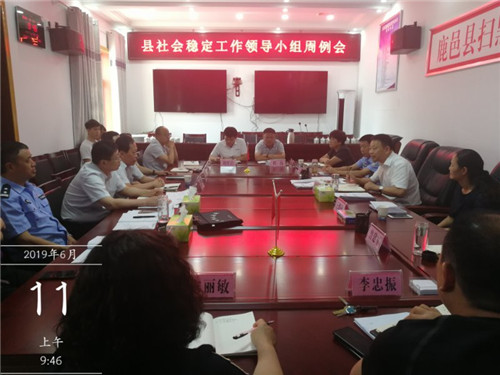 6月11日上午,鹿邑縣委副書記、政法委書記許四軍主持召開縣社會穩(wěn)定工作領(lǐng)導(dǎo)小組周例會,縣領(lǐng)導(dǎo)王曉征、任金瑞、齊梅英、魯建軍出席會議??h委政法委、公安局、檢察院、法院、司法局、信訪局等單位相關(guān)負(fù)責(zé)人參加會議。