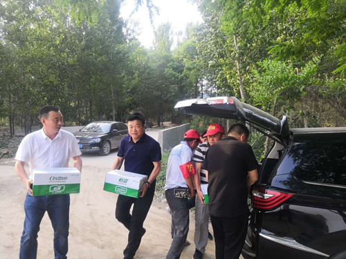 “我始終認(rèn)為,為家鄉(xiāng)建設(shè)出一份力,是我義不容辭的義務(wù)?!北本┦腥f城泰安建設(shè)有限公司白國(guó)正董事長(zhǎng)對(duì)鄉(xiāng)親們說。6月1日,白國(guó)正為堅(jiān)守在禁燒一線的工作人員,送來了恒大冰泉礦泉水100件。