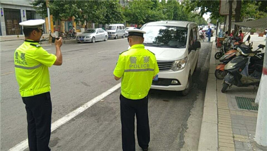 為強化對“違?!钡闹卫砹Χ?,鄲城交警以學(xué)校周邊、醫(yī)院門口、餐飲場所周邊為重點整治區(qū)域,對重點整治路段,采取巡邏管控和定點嚴查相結(jié)合的方式,在上下班、早晚高峰等重點時段加大巡邏力度,對違停車輛駕駛?cè)嗽诂F(xiàn)場的,對其進行勸離、警告、教育,講清亂停亂放的危害性。對駕駛?cè)瞬辉诂F(xiàn)場的,采取拍照攝錄取證、粘貼《違法停車告知單》的方法,加大亂停亂放治理的非現(xiàn)場執(zhí)法力度。對妨礙其他車輛、行人通行的違停車輛,依法進行拖移,并建立違停治理的長效機制,常抓不懈,確保我縣中心城區(qū)道路交通安全、有序、暢通,為創(chuàng)建國家級衛(wèi)生縣城做出積極貢獻。