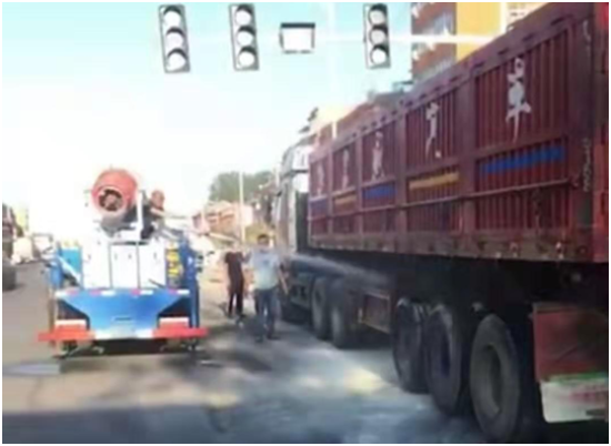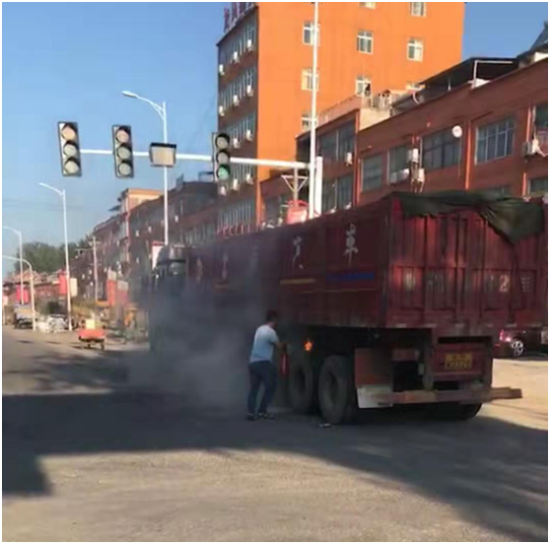 7月6日早上6時40分,一輛貨車由東至西行駛到西扶超限檢測站負(fù)責(zé)的環(huán)保檢測卡點時輪胎突然起火,執(zhí)法人員發(fā)現(xiàn)后,立即用車載喇叭喊話提醒司機(jī)停車,此時車輛正好停在值勤卡點紅綠燈處,一旦火勢不受控制,將給司機(jī)及周邊群眾帶來不可預(yù)測的危險與損失,帶班站長李建東一邊組織人員進(jìn)行救火,一邊通知站長劉洪亮。得到警情后,劉洪亮站長立即組織增援,同時指令張光輝、劉伯倫駕駛站內(nèi)高壓撒水車迅速趕往事故現(xiàn)場,經(jīng)過共同努力,著火處被撲滅,避免了一場火災(zāi)事故的發(fā)生。事后,貨車司機(jī)十分感動,拉著執(zhí)法人員的手深表謝意。