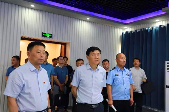 7月21日,平頂山市葉縣縣委常委、政法委書記王旭,縣政府黨組成員、公安局局長(zhǎng)李根太帶領(lǐng)公安、發(fā)改、財(cái)政等相關(guān)部門負(fù)責(zé)人,前來(lái)鹿邑縣考察學(xué)習(xí)“千村萬(wàn)星”視頻監(jiān)控雪亮工程建設(shè)及“一村(格)一警”工作開(kāi)展情況。鹿邑縣委副書記、政法委書記許四軍陪同參觀。