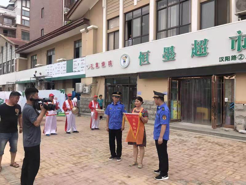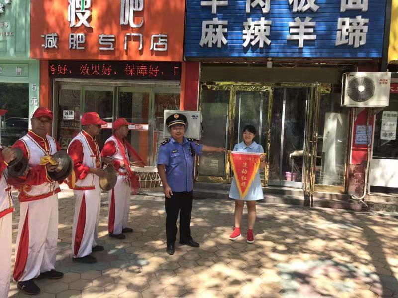 為鞏固創(chuàng)衛(wèi)成果,提高城市精細(xì)化管理水平,川匯區(qū)持續(xù)開展“紅黑旗”評選活動。7月22日,在陣陣鑼鼓聲中,該區(qū)城管人員又為6家紅旗商戶、6家黑旗商戶分別懸掛紅黑旗。
