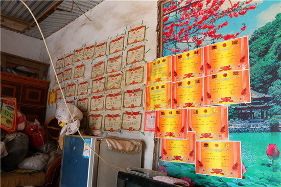 7月28日星期天,是王冬去看兩名"女兒"的時間。小姐妹家的院子不大,但被收拾得干干凈凈。屋內(nèi)擺放著一臺21英寸舊電視和一臺冰箱,但都是13年以前購買的。屋子北墻上貼滿了獎狀,十分惹眼,“倆孩子都爭氣,每次都拿獎,這些獎狀都是著她們學(xué)習(xí)掙來的?!蓖踝忧绲哪棠逃檬种钢鴫ι系莫劆钭院赖卣f。