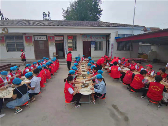 當(dāng)天上午,一場由周口市紀委監(jiān)委駐杜崗村工作隊聯(lián)合紅花鎮(zhèn)、杜崗村、周口北斗達教育集團共同舉辦的孝老餃子宴,在該村文化廣場別開生面地拉來序幕?!按謇锼?0歲(含60歲)以上的老人今天中午都到文化廣場來吃餃子啊,市紀委和愛心企業(yè)來為我們包餃子啦……”8時剛過,杜崗村黨支部書記李長青就通過村里的大廣播每隔半小時播報一次,生怕哪位老人忘了這檔子事兒。