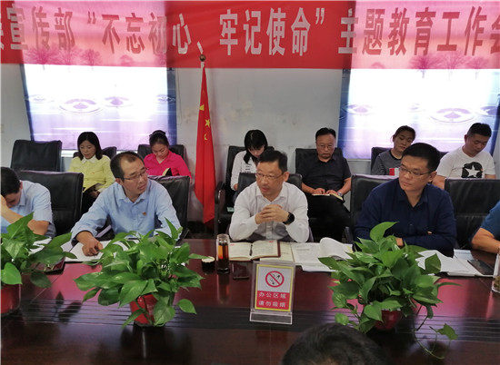 9月18日下午,縣委宣傳部召開“不忘初心、牢記使命”主題教育工作會議,學(xué)習(xí)習(xí)近平總書記在“不忘初心、牢記使命”主題教育會議上的講話,深入貫徹落實(shí)中央、省委、市委和縣委“不忘初心、牢記使命”主題教育工作會議精神,安排部署部機(jī)關(guān)“不忘初心、牢記使命”主題教育工作。