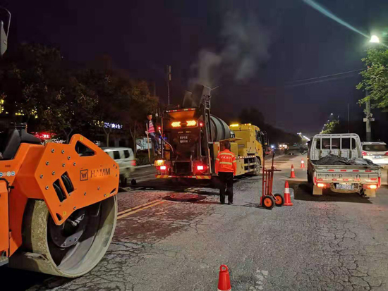 9月20日晚,記者在八一大道北段看到,道路綜合養(yǎng)護(hù)車、壓路機(jī)、運(yùn)輸車、圓周切割機(jī)等車輛和設(shè)備早已到位,市政工人正在施工(如圖)。從切割路面到恢復(fù)通車,一段路不到兩個小時(shí)就完成了任務(wù)。從外觀看,新更換的窨井蓋與以前的并無明顯差別。