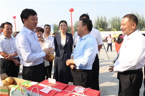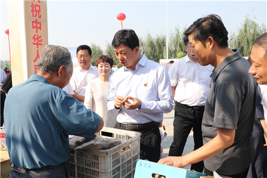 一問(wèn)一答間,爽朗的笑聲響徹節(jié)日上空,農(nóng)民們喜笑顏開(kāi),傳遞出濃濃的幸福。大棗、黑木耳、小麥粉、粉條等西華縣各具特色的農(nóng)產(chǎn)品紛紛亮相,除了展示各自的“增收實(shí)力”,也展示出幾年來(lái)發(fā)展農(nóng)業(yè)特色經(jīng)濟(jì)的豐碩成果?!罢钆_(tái),農(nóng)民唱戲,每年一度的農(nóng)民豐收節(jié)既是農(nóng)民歡樂(lè)的節(jié)日,也是展銷農(nóng)產(chǎn)品的紐帶平臺(tái),今天我們奉母鎮(zhèn)展示了本地原生態(tài)粉條和純糧美酒,希望借助豐收節(jié)機(jī)遇,拓寬銷路實(shí)現(xiàn)農(nóng)民增收。”西華縣奉母鎮(zhèn)黨委書(shū)記陳鵬告訴記者。