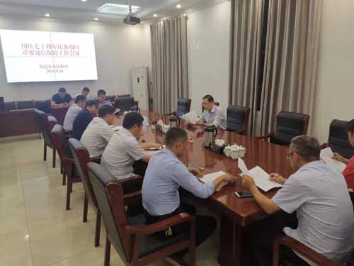 9月24日晚上,鹿邑縣政府副縣長(zhǎng)翟杰組織召開國(guó)慶七十周年慶典期間重要通信保障工作推進(jìn)會(huì)。會(huì)議迅速傳達(dá)學(xué)習(xí)了周口市政府有關(guān)加強(qiáng)通信保障的通知精神,對(duì)有關(guān)工作進(jìn)行安排部署。