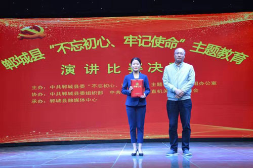 10月29日下午,由中共鄲城縣委“不忘初心、牢記使命”主題教育領導小組辦公室主辦,鄲城縣委組織部、縣直機關工委協(xié)辦,縣融媒體中心承辦的“不忘初心、牢記使命”主題教育演講比賽決賽舉行,鄲城縣委常委、組織部長、縣委“不忘初心、牢記使命”領導小組辦公室主任侯磊等出席并為獲獎者頒發(fā)獎章證書。