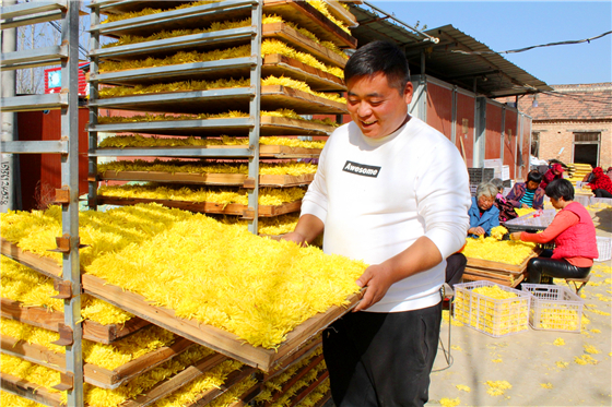 “在菊花種植基地采摘、挑揀、擺放菊花,一天能收入80多元,活不累,還能顧家,比外出打工強(qiáng)……”11月11日,在西華縣鑫豐菊花種植專(zhuān)業(yè)合作社菊花烘干車(chē)間旁,來(lái)自清河驛鄉(xiāng)腰莊村今年60多歲的村民樊景峰,一邊熟練地挑揀、擺放菊花,一邊高興地對(duì)記者說(shuō)。