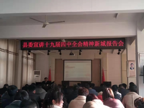 12月2日上午,鄲城縣委宣講團成員邢偉到新城辦事處進行十九屆四中全會精神宣講。新城辦事處黨工委書記王一博主持報告會。辦事處全體干部、直屬單位負(fù)責(zé)人、社區(qū)“三委”班子成員參加了報告會。