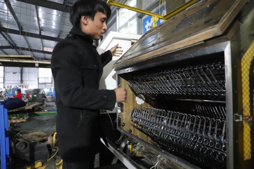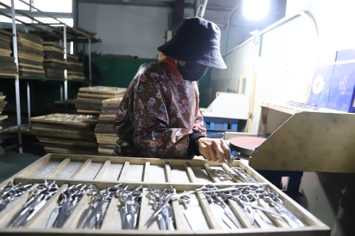 “我也是從小就外出,一直在江蘇蘇州發(fā)展,做刀剪十幾年了?,F(xiàn)在家鄉(xiāng)環(huán)境好,回來(lái)發(fā)展比在南方還有前途?!苯衲?9歲的陳政治老家是虎崗鄉(xiāng)陳莊村。被虎崗鄉(xiāng)黨委政府的誠(chéng)意所感動(dòng),他很樂(lè)意回鄉(xiāng)發(fā)展,因?yàn)榉孔鈨r(jià)格低、務(wù)工人員穩(wěn)定,營(yíng)商環(huán)境又好,所以他帶著自己的外甥楊亞杰和技術(shù)團(tuán)隊(duì)回到老家鄲城,還能助力家鄉(xiāng)經(jīng)濟(jì)發(fā)展。陳政治說(shuō),他的廠子所生產(chǎn)的東升、jack、亞寶等品牌刀剪全部銷(xiāo)往全國(guó)高檔理發(fā)店,產(chǎn)品供不應(yīng)求。像這樣的高檔刀剪生產(chǎn)廠家,在中原地帶極少。剛投產(chǎn)幾個(gè)月,他已經(jīng)接到了來(lái)自韓國(guó)、日本等地的訂單。