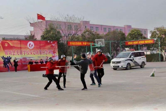 為切實做好“平安校園”建設(shè)工作,進一步增強全縣師生對突發(fā)暴恐事件的防范意識,提升在面對暴恐事件時自護自救及有效逃生避險能力,最大限度減少因突發(fā)暴恐事件對師生造成的傷害,提高學(xué)校安全保衛(wèi)應(yīng)急處置和管理水平,12月20日上午,鄲城縣反恐辦組織相關(guān)單位在光明中學(xué)開展防暴恐知識培訓(xùn)和演練。