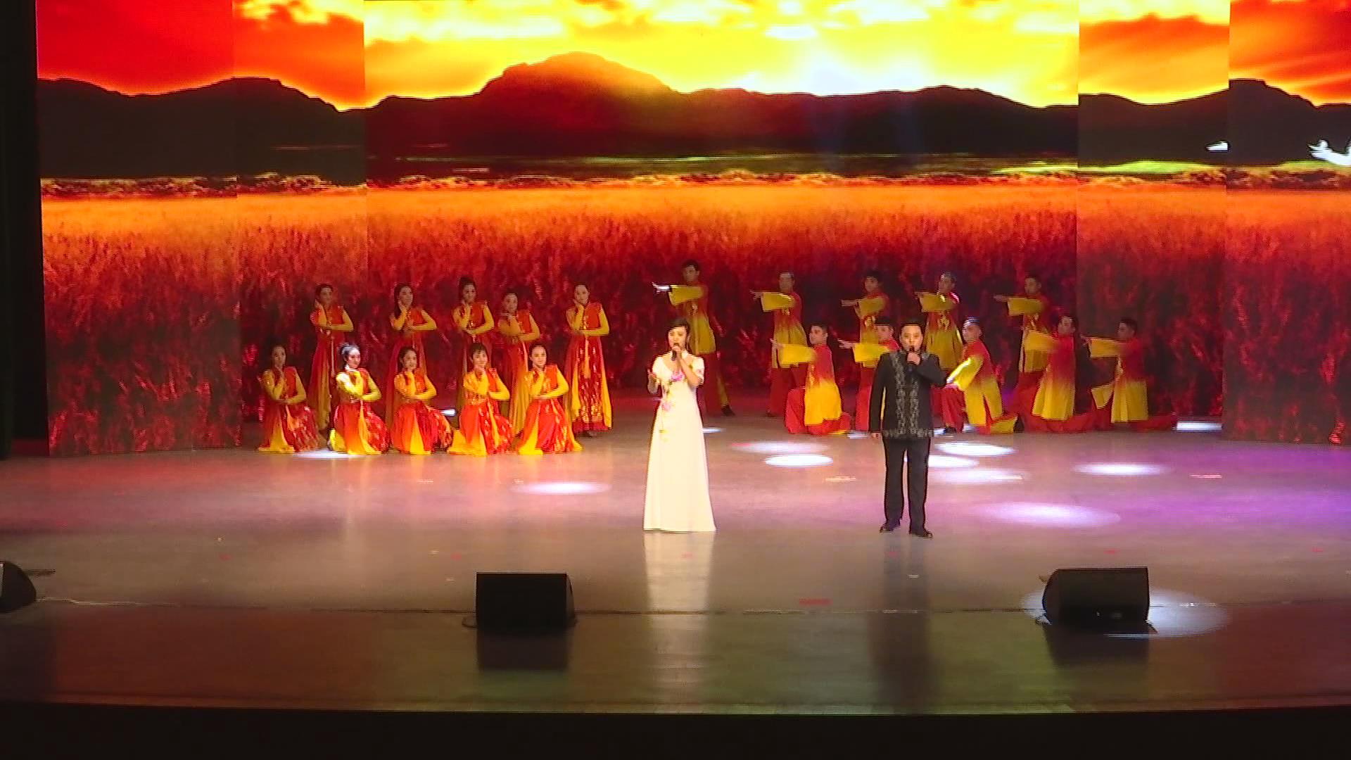 晚會結(jié)束后,與會領(lǐng)導(dǎo)上臺與全體演員一一握手并合影留念。