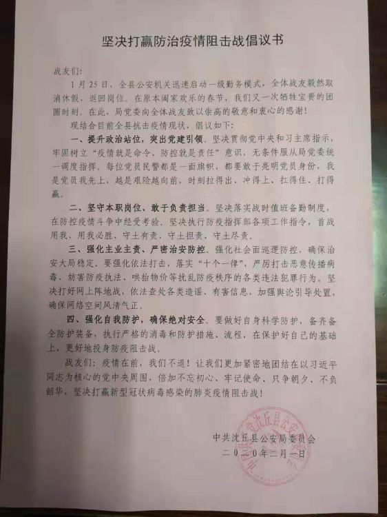 自全省啟動抗擊新型冠狀病毒引發(fā)肺炎疫情的一級響應(yīng)后,沈丘縣公安機(jī)關(guān)迅速啟動一級勤務(wù)模式,在這場舉國同頻共振的防治疫情偉大斗爭中,突出戰(zhàn)時黨建引領(lǐng),為堅決打贏疫情奠定了堅實的組織保障。