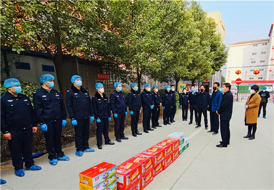 2月13日下午,鄲城縣公安局長陳鳳祥帶領(lǐng)副政委黃建良、行財室教導(dǎo)員段擁軍,深入胡集鄉(xiāng)檢查指導(dǎo)疫情防控和春耕、復(fù)工復(fù)產(chǎn)工作,再次慰問公安局看護中隊駐陽光家園工作隊員,了解群眾生產(chǎn)和外出人員返城務(wù)工情況,認真梳理存在問題,提出具體指導(dǎo)建議,詳細部署下一步工作。