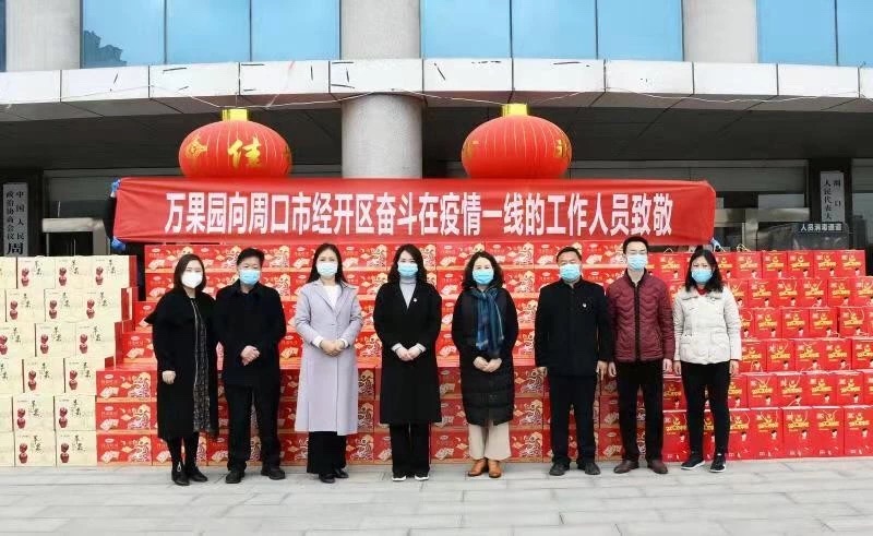 2月13日,河南萬果園實(shí)業(yè)集團(tuán)有限公司向開發(fā)區(qū)捐贈(zèng)一起物資,助力疫情防控一線工作人員。