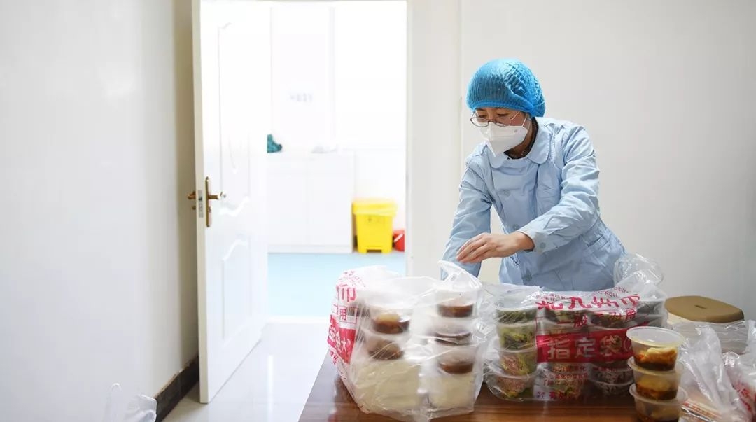 又到了打飯的時(shí)間,鄲城縣人民醫(yī)院新冠肺炎定點(diǎn)治療隔離病區(qū)護(hù)士長莊坤掰著手指一個(gè)一個(gè)向餐廳介紹病人的情況,用“了如指掌”來形容最恰當(dāng)不過。一邊說話,她一邊熟練地將幾筐飯菜分類打包,每一份都用食品袋包好,哪是確診病人的,哪是留觀病人的,每一份上面都寫上名字,再由護(hù)士分別送去。