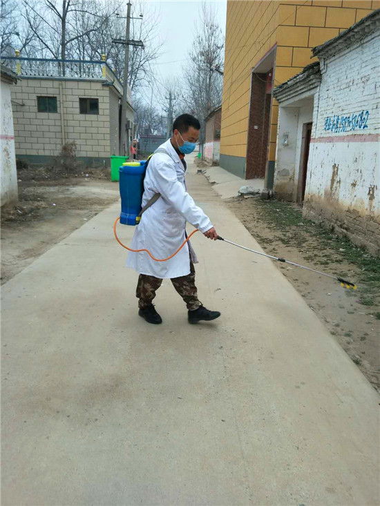 他不是為村民分發(fā)消毒液,就是對(duì)村主干道、公共衛(wèi)生間每天堅(jiān)持消毒,雙腿累腫了,嘴唇起了泡,可他咬牙堅(jiān)持。村委成員見他每天像個(gè)陀螺一樣高速的運(yùn)轉(zhuǎn)著,讓他休息幾天,可楊建崗說啥也不同意。每天還是堅(jiān)持著值班,發(fā)現(xiàn)問題及時(shí)糾正,對(duì)有些不理解的村民進(jìn)行說服教育。除了值班,他還與其他志愿者一起做好流動(dòng)崗,發(fā)現(xiàn)有扎堆的村民立即勸阻,發(fā)現(xiàn)有不戴口罩者一律勸回,對(duì)亂走親戚的村民堅(jiān)決說“不”。