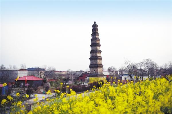 壽圣寺塔 位于商水縣郝崗鄉(xiāng)北常社店村,始建于北宋明道二年(1033年),明嘉靖二十八年進行過大修。1998年9月,壽圣寺塔又進行了一次大修。壽圣寺塔為九級樓閣式磚塔,高41.5米,平面呈正六邊形,塔內(nèi)砌有盤旋的塔道,可逐級登高遠眺。塔體從底至頂漸收勻稱,成正六棱體錐形,塔頂形似寶葫蘆,給人以挺拔雋秀之感。塔的層檐收放尺寸自然得體,既保護了塔墻免遭雨雪侵蝕,又給予塔體以美的裝飾,看上去既規(guī)整肅穆,又不呆板。