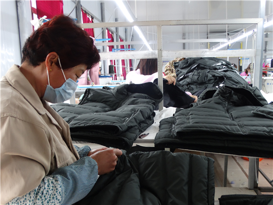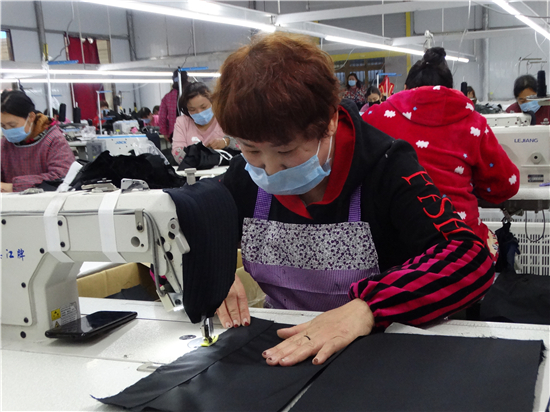 疫情不能放松,復工復產(chǎn)也要穩(wěn)妥推進。連日來,沈丘縣婦聯(lián)鼓勵引導和組織廣大婦女群眾科學安全有序助力企業(yè)、農(nóng)業(yè)合作社、扶貧車間等復工復產(chǎn),確保戰(zhàn)"疫"扶貧兩不誤,為統(tǒng)籌推進防疫戰(zhàn)和脫貧攻堅戰(zhàn)貢獻巾幗力量。圖為沈丘縣周營鎮(zhèn)馬營村慧恩服飾有限公司來料加工扶貧車間內(nèi),女工們正在生產(chǎn)線上加工訂單服裝。