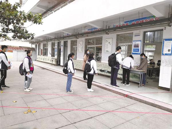 “復(fù)學(xué)后,周口四中實(shí)行小班教學(xué),每個(gè)班不超過(guò)35人,每個(gè)人前后左右間隔不低于1米,每個(gè)人進(jìn)入教室時(shí)需要測(cè)量體溫。”周口四中副校長(zhǎng)蘇飛告訴記者,班級(jí)一分為二,教師的工作量成倍增加,但是,學(xué)校在前期做了大量的教學(xué)準(zhǔn)備工作,合理安排初三年級(jí)的課程表,保證每個(gè)班、每節(jié)課都有老師進(jìn)行現(xiàn)場(chǎng)教學(xué)和現(xiàn)場(chǎng)輔導(dǎo)。