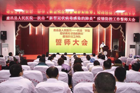下午4時(shí),老子故里鹿邑縣,縣域醫(yī)療健康服務(wù)集團(tuán)牽頭單位、該縣規(guī)模最大的綜合性二級(jí)甲等公立醫(yī)院——縣人民醫(yī)院正在召開新冠肺炎疫情防控工作誓師會(huì)。