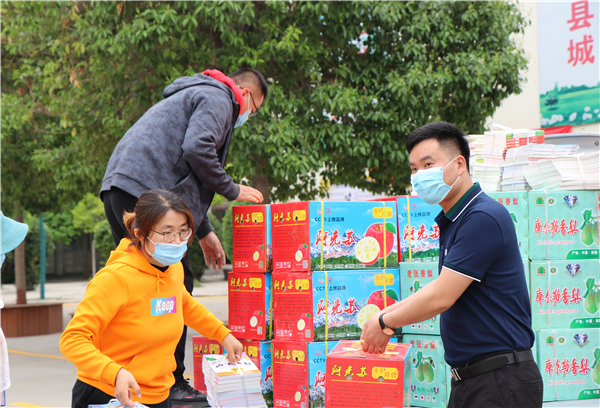 不久,一輛小貨車駛?cè)雽?shí)驗(yàn)小學(xué)院內(nèi),滿載著水果、毛巾、酒精、消毒液、洗手液和圖書等物資,總計(jì)價(jià)值兩萬余元。吳玲玲跳下車,向迎上來的韓濤簡單地打了招呼,便和學(xué)校工作人員一起把水果等物資卸載搬運(yùn)。