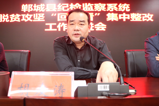 5月5日上午,鄲城縣紀(jì)委監(jiān)委召開全縣紀(jì)檢監(jiān)察系統(tǒng)脫貧攻堅(jiān)“回頭看”集中整改工作推進(jìn)會??h委常委、縣紀(jì)委書記、監(jiān)委主任胡友濤出席會議。