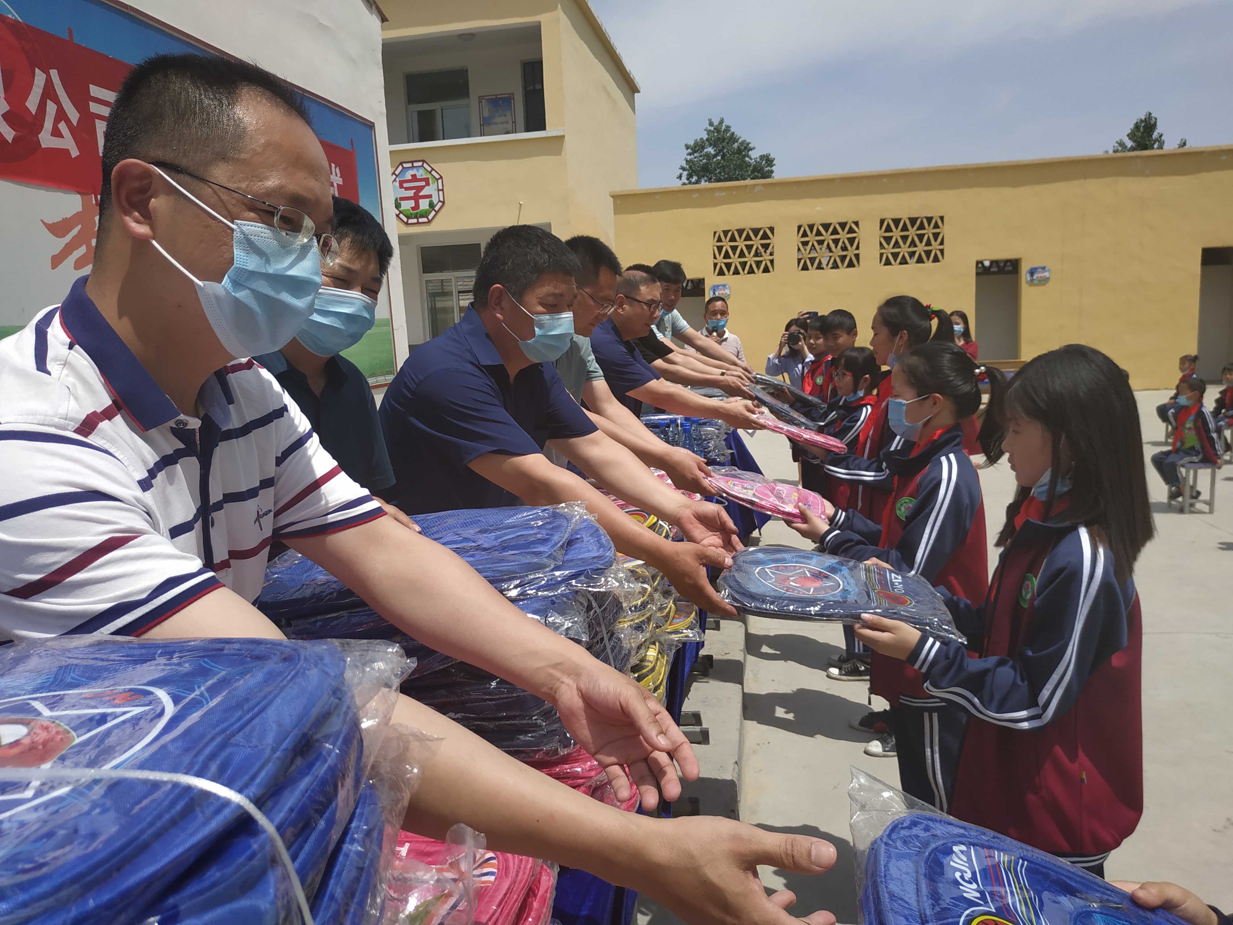 5月21日,河南同和堂醫(yī)藥有限公司與部分周口愛(ài)心人士,穿過(guò)滾滾麥浪,來(lái)到市醫(yī)保局定點(diǎn)扶貧村——項(xiàng)城市新橋鎮(zhèn)北李營(yíng)行政村,為村小學(xué)的學(xué)生們送去200個(gè)書(shū)包,向他們提前送上六一兒童節(jié)的祝福。