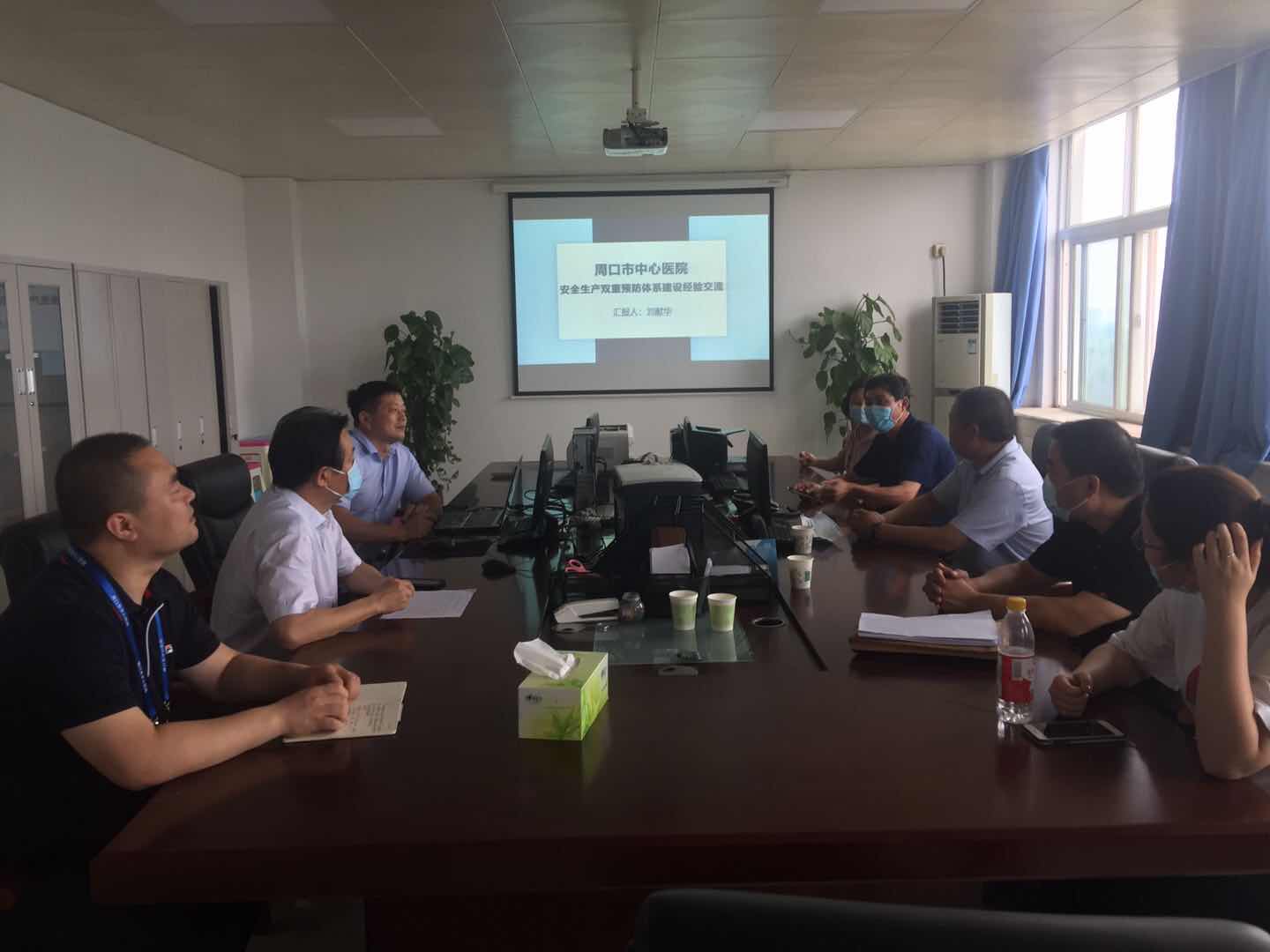 6月15日下午,扶溝縣人民醫(yī)院一行6人來到周口市中心醫(yī)院對安全生產(chǎn)雙重預(yù)防體系建設(shè)工作進行參觀交流,市中心醫(yī)院副院長呂燕平、保衛(wèi)科科長劉獻華、醫(yī)聯(lián)部主任張小虎陪同。