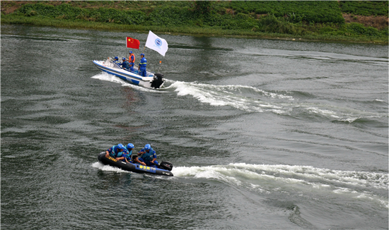 上午9時,隨著田林“開始演練”命令的下達(dá),60人組成的搶險突擊隊,緊張有序開展了五個科目的演練。突擊隊員通過巡堤查險,觀察堤坡及堤腳附近有無滲水、管涌、裂縫、滑坡、漏洞等險情。發(fā)現(xiàn)險情后,迅速采取導(dǎo)滲、截滲等搶險措施,確保險情得到及時、正確、有效的處理或控制。發(fā)現(xiàn)落水人員,四艘沖鋒舟分工明確,立即前往落水地點進(jìn)行救助。