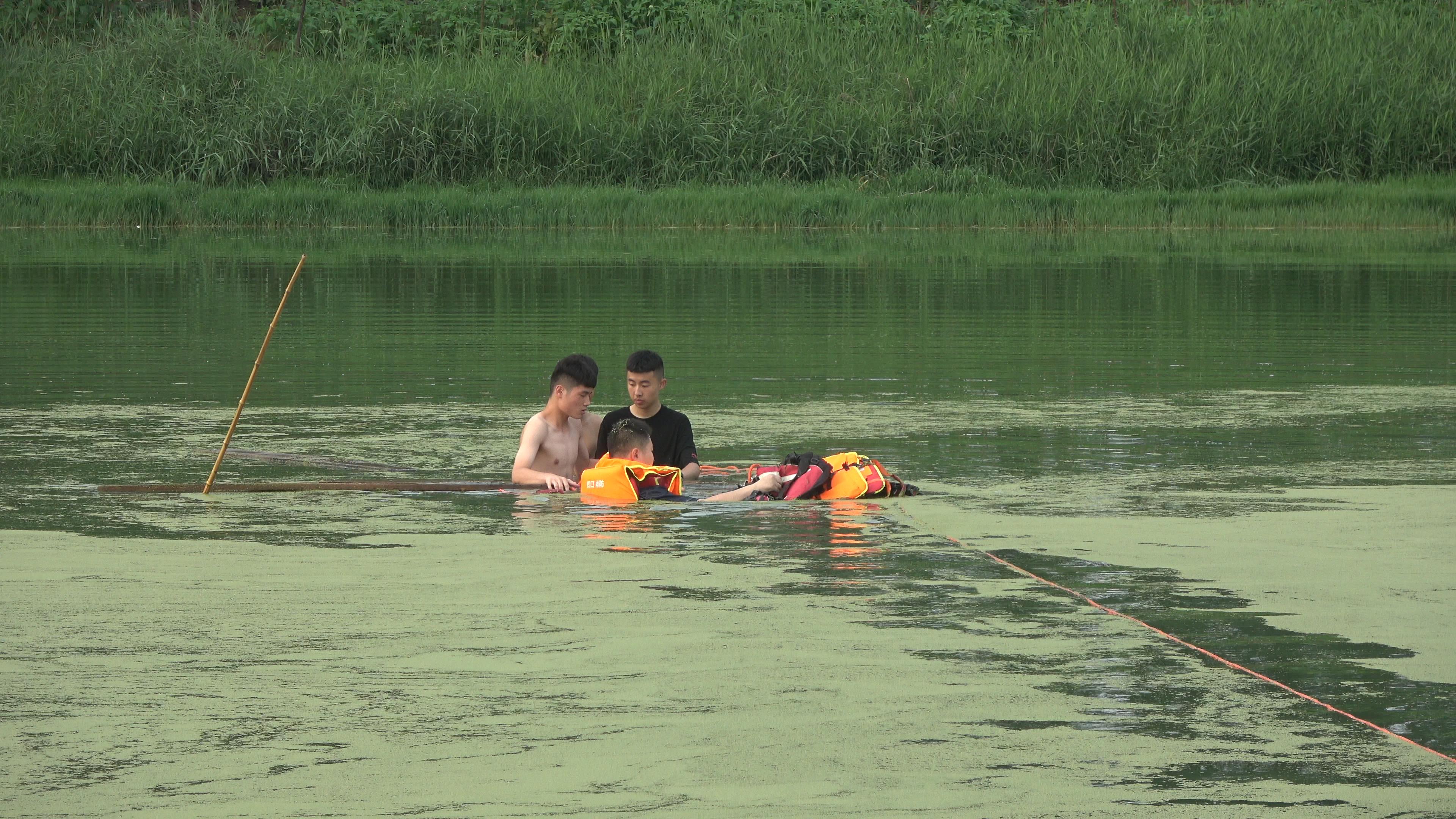 接到群眾報(bào)警后,太康縣消防救援大隊(duì)立即出動(dòng)3部消防車、15名指戰(zhàn)員趕赴現(xiàn)場(chǎng)。救援人員發(fā)現(xiàn),由于近日多雨,河水有3米多深,三名少年站在已經(jīng)沉沒的船上搖搖晃晃,水已經(jīng)淹沒到胸部,情況十分危急?,F(xiàn)場(chǎng)指揮員立即決定挑選2名水性較好的消防員攜帶救生衣、水域救援漂浮繩等相關(guān)器材,實(shí)施渡河營(yíng)救。看到救援人員一點(diǎn)點(diǎn)靠近,三名少年情緒穩(wěn)定了不少,隨后配合消防員將救生衣穿好,在消防員的指引下,三名少年拉著救援繩在岸上消防員的幫助下成功靠岸脫險(xiǎn)。
