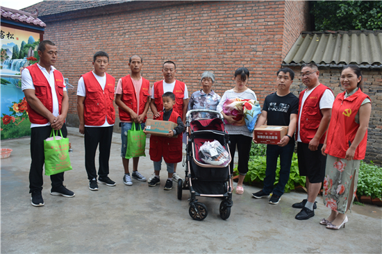 7月12日上午,周口市義工協(xié)會劉玉英帶領(lǐng)市縣義工志愿者一行10余人冒雨到商水縣平店鄉(xiāng)曾莊村看望慰問貧困家庭曾廣忍的新生病兒,送去了奶粉、嬰兒車、衣物等生活用品,送去了社會慈善機(jī)構(gòu)和愛心人士的一片關(guān)愛之情。