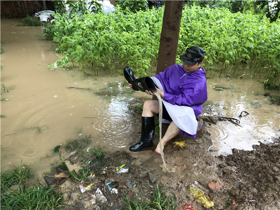 風雨中,蔣昆一方面幫助群眾轉移受災財產(chǎn),將損失降到最低,另一方面組織巡查村莊所有路段、河流、溝渠,及時發(fā)現(xiàn)隱患,做好防范措施。天災無情人有情,作為一名具有豐富搶險救災經(jīng)驗的退役軍人來說,在災害來臨之時,沖鋒在救災一線是蔣昆永遠不變的選擇。