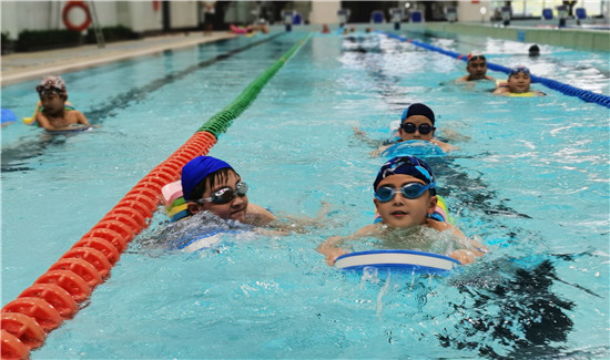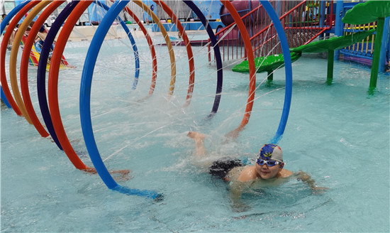 8月16日,不少家長(zhǎng)帶孩子在周口游泳館游戲嬉戲。持續(xù)的高溫天氣讓周口進(jìn)入“燒烤”模式,水里的清涼世界成了消暑降溫的好去處,不少市民選擇到游泳館、水上游樂(lè)場(chǎng)館,既可以游泳鍛煉身體,也可以和孩子們?cè)谒杏H子玩耍。