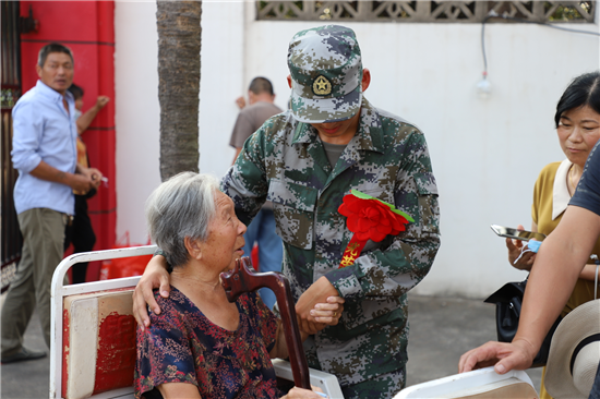 當(dāng)日,新兵們身著嶄新軍裝,胸前佩戴大紅花,軍姿筆挺地站列家長兩側(cè),聆聽政委李峰的講話:“你們從體檢、政考、役前教育訓(xùn)練、封閉隔離等環(huán)節(jié)中脫穎而出。在這即將奔赴軍營之際,對你們和家長表示祝賀,希望你們要不忘初心,堅定從軍報國的信念,把滿腔的熱情轉(zhuǎn)化為報國之志;要把握機會,積極主動參加訓(xùn)練,爭當(dāng)優(yōu)秀士兵、班長骨干,在軍營建功立業(yè);要心系故里,牢記家鄉(xiāng)親人殷切期盼,為家鄉(xiāng)爭光添彩?!?/p>